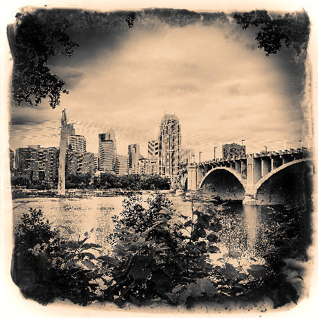 Stunning black and white Minneapolis scenes on stoneware tile coasters. Bottom layer of cork lining prevents damage to delicate surface areas. Gift box with order of four coasters.